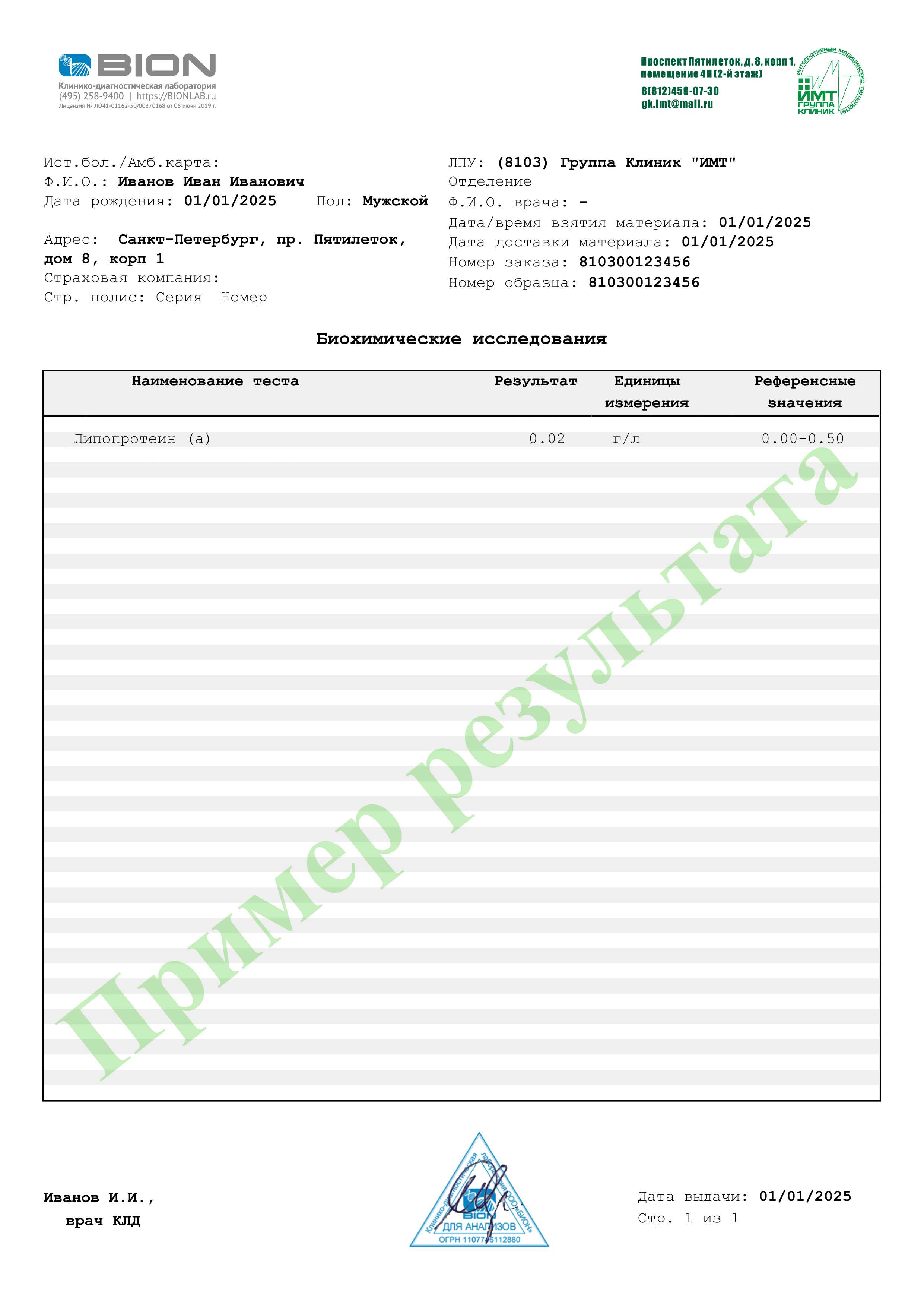 Интерпретация результатов анализов носит информационный характер, не является диагнозом и не заменяет консультации врача. Референсные значения могут отличаться от указанных в зависимости от используемого оборудования, актуальные значения будут указаны на бланке результатов.